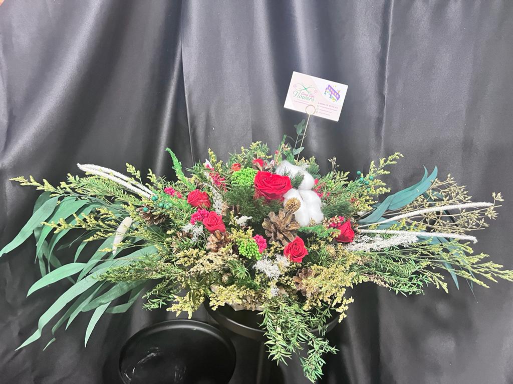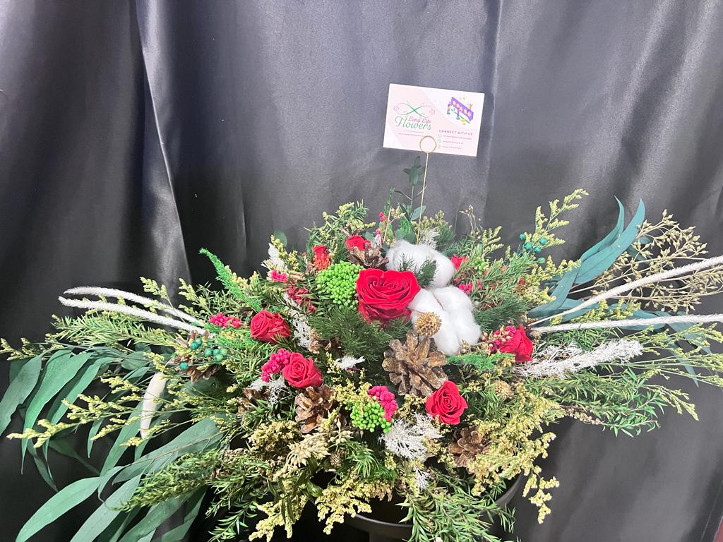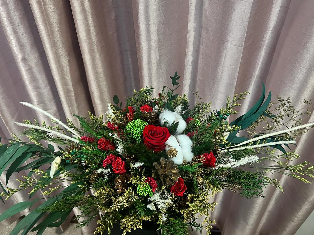 Elevate your holiday ambiance with our exquisite Christmas Bouquet, artfully composed from stabilised and dried flowers. This enchanting arrangement captures the festive spirit, offering a unique blend of sustainability and elegance. Adorned with carefully preserved blooms, the bouquet emanates the timeless beauty of Christmas, bringing a touch of nature indoors. Each petal is a testament to craftsmanship, creating a festive centrepiece that remains vibrant throughout the season. Embrace the spirit of a UK Christmas with this stunning bouquet, a symbol of both tradition and contemporary elegance.