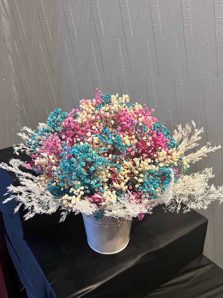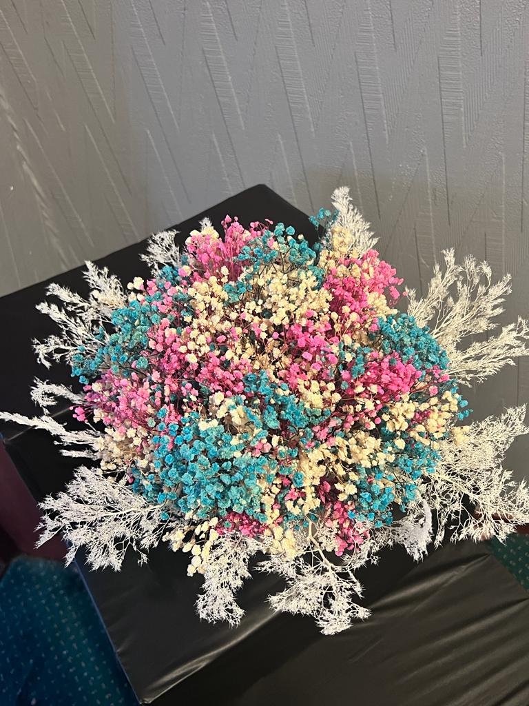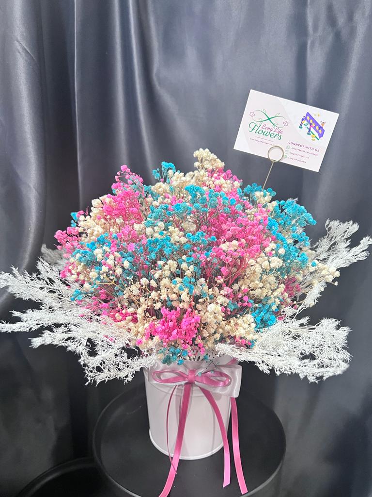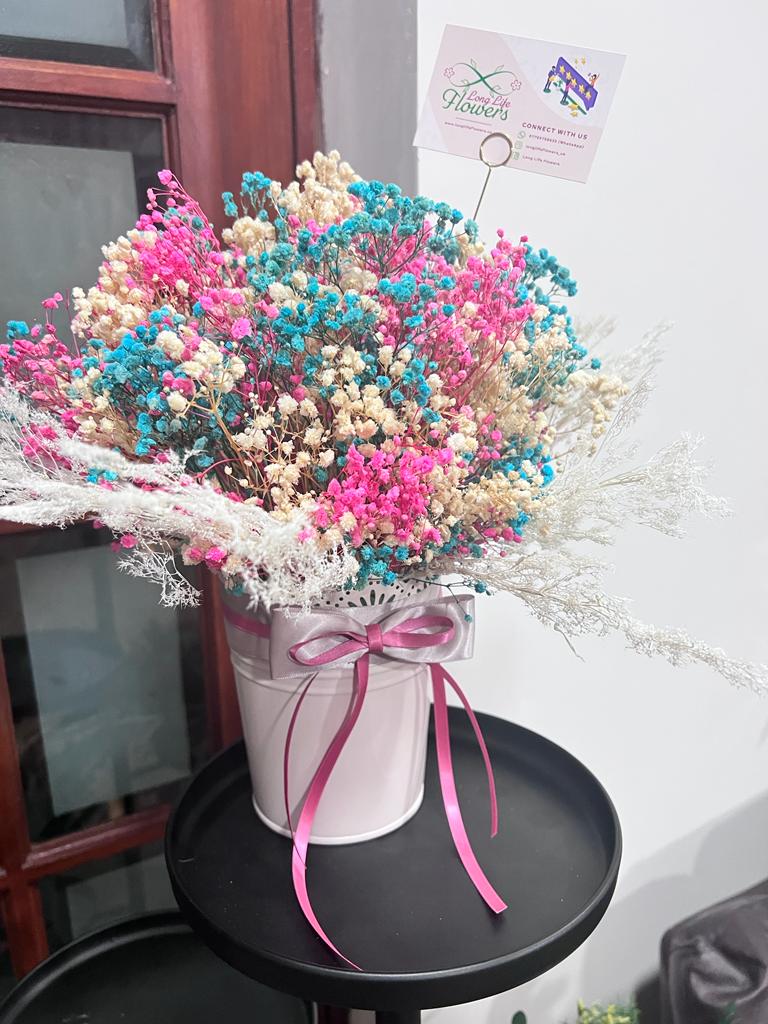 Within this bouquet, discover a harmonious blend of stabilised flowers and dried blooms.