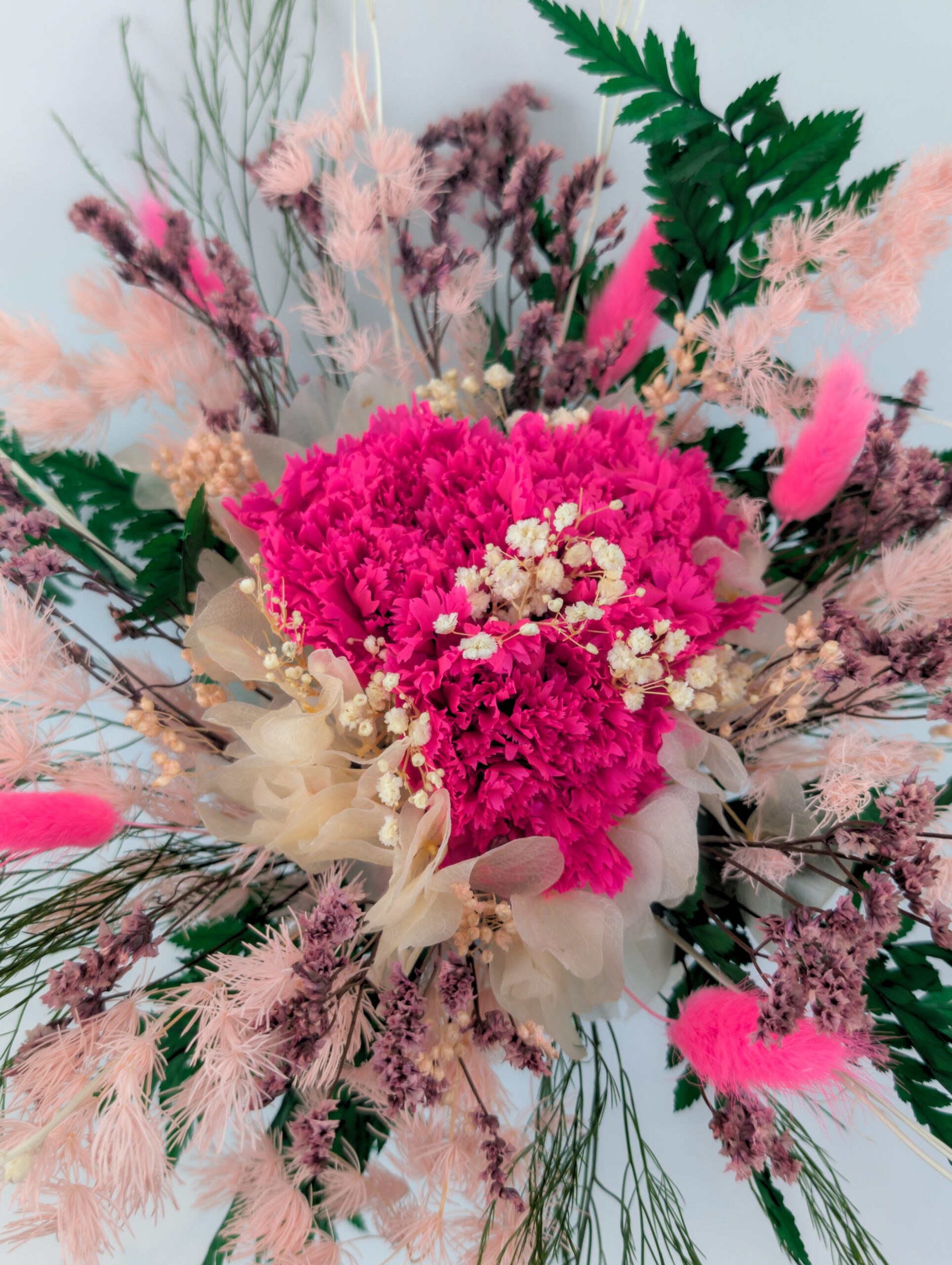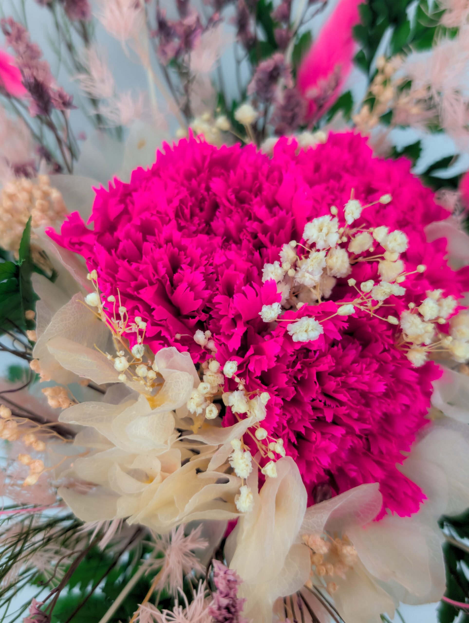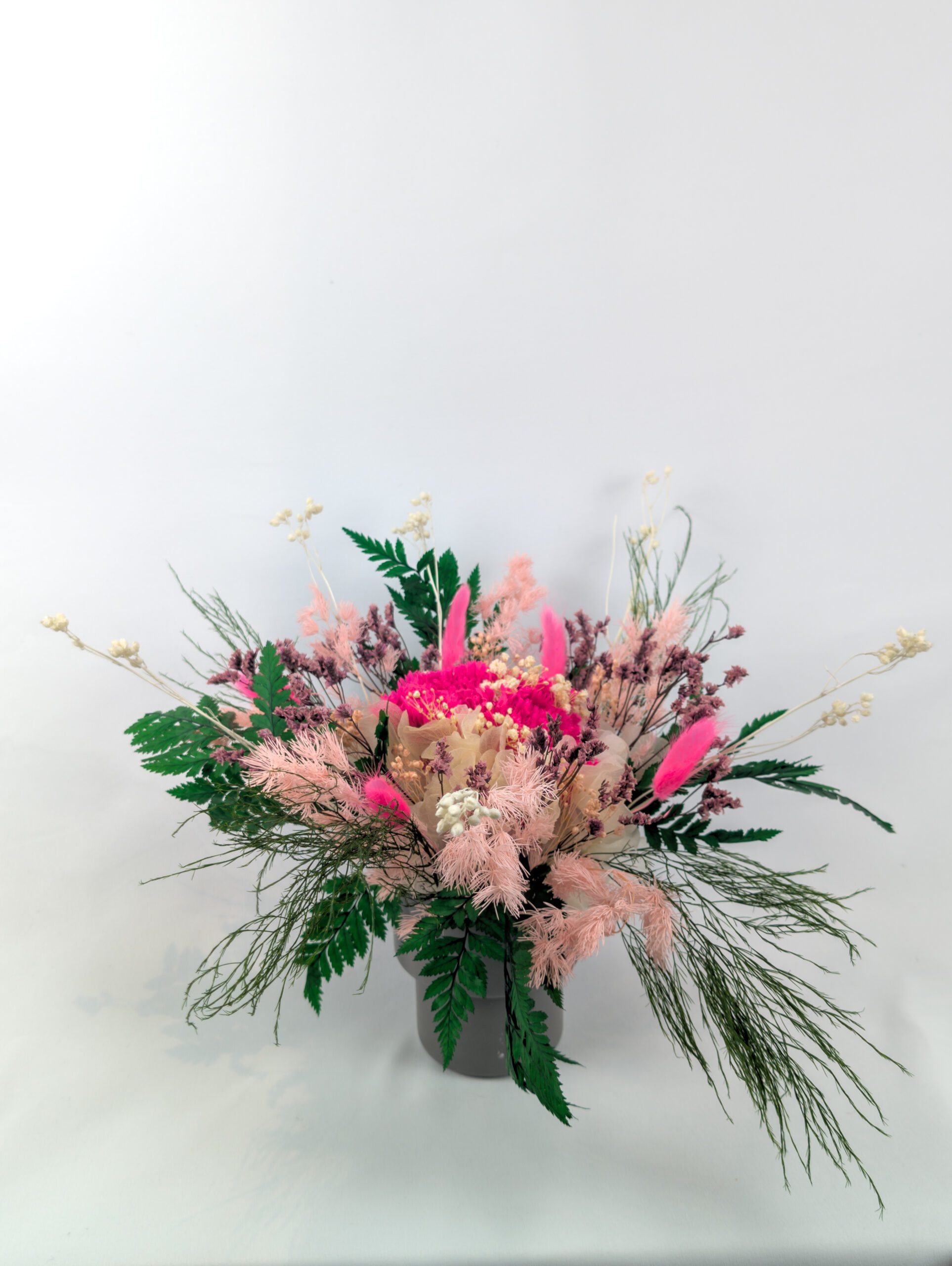 Within this bouquet, discover a harmonious blend of stabilised flowers and dried blooms.