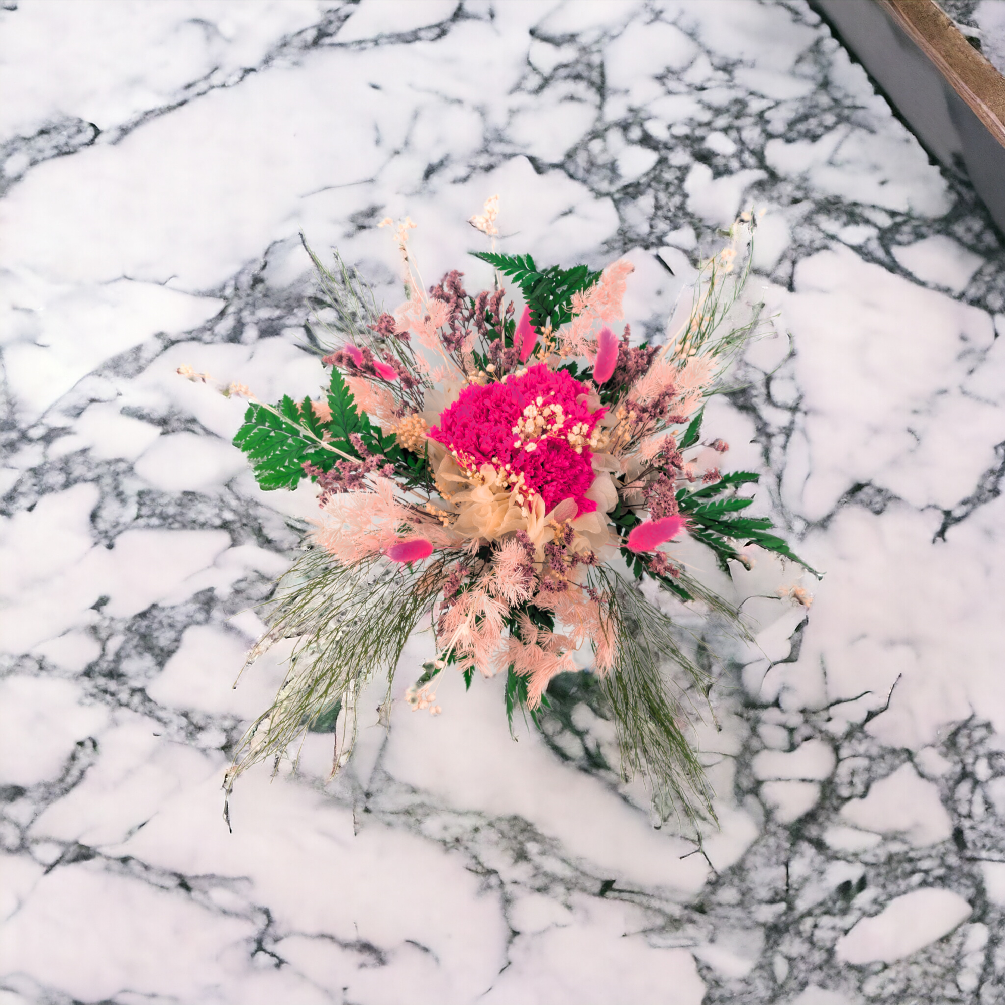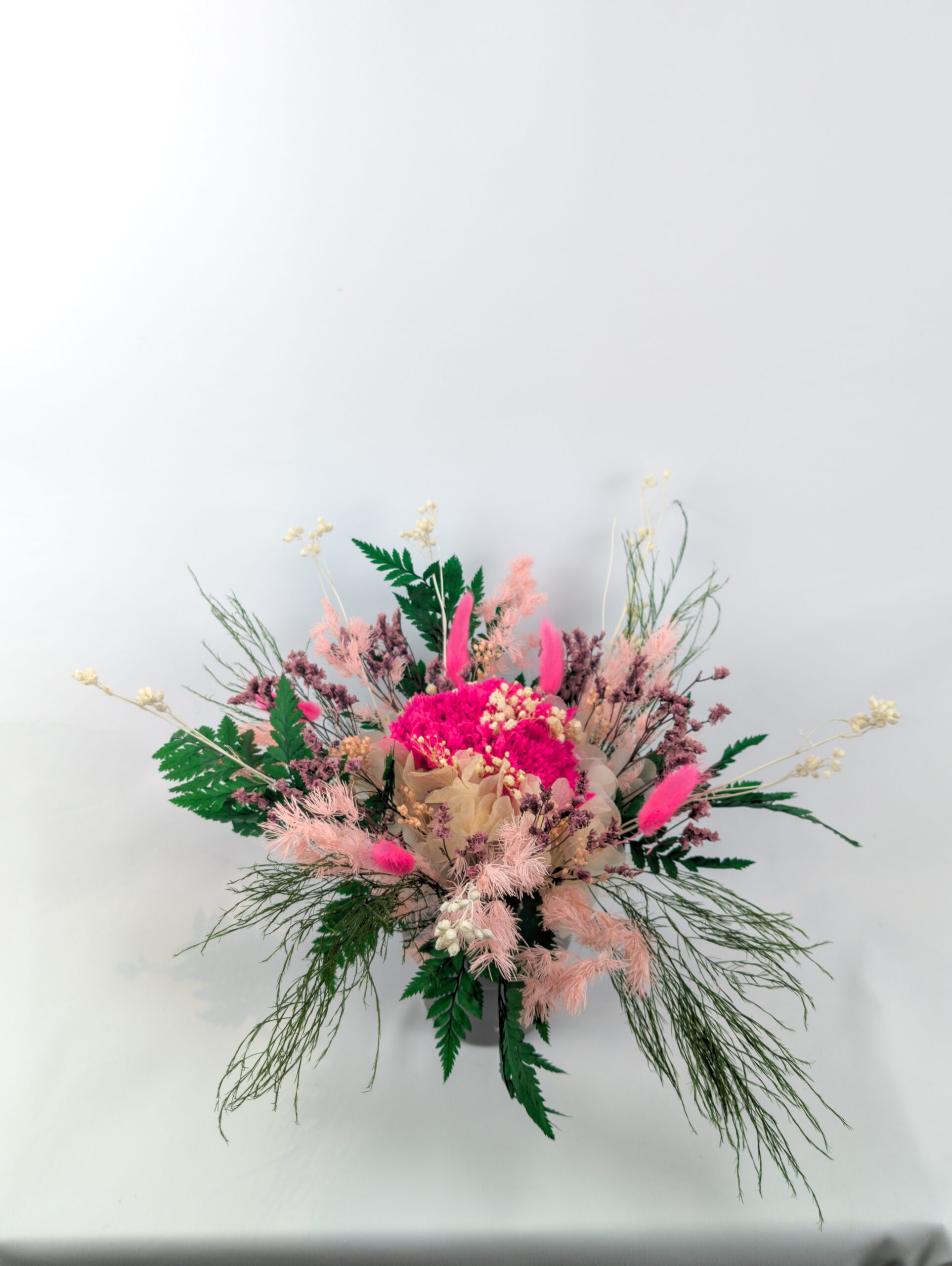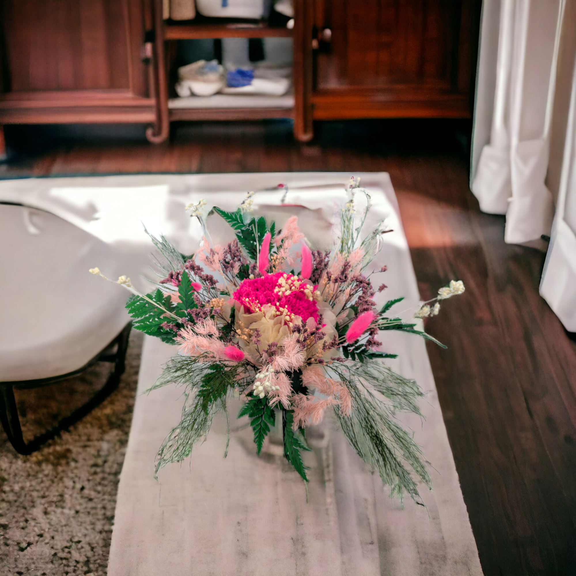 Within this bouquet, discover a harmonious blend of stabilised flowers and dried blooms.